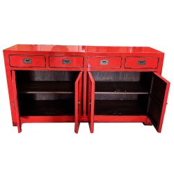 Buffet chinois rouge vif patiné