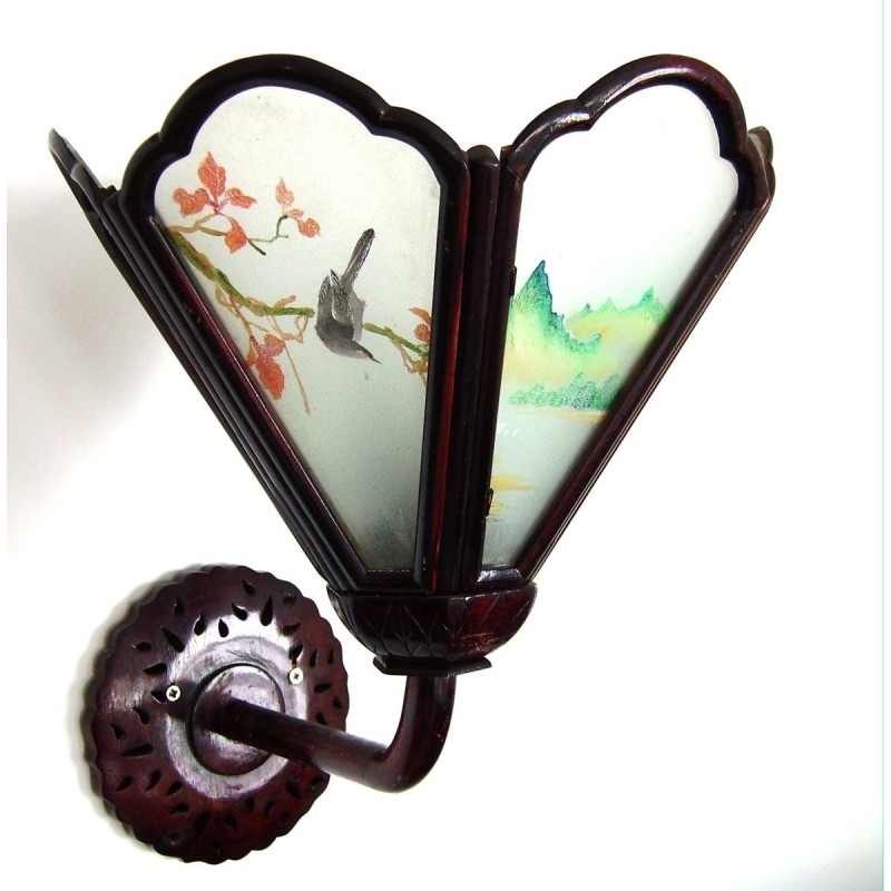 Applique chinoise du mandarin de Gex en bois sculpté et verre peint.